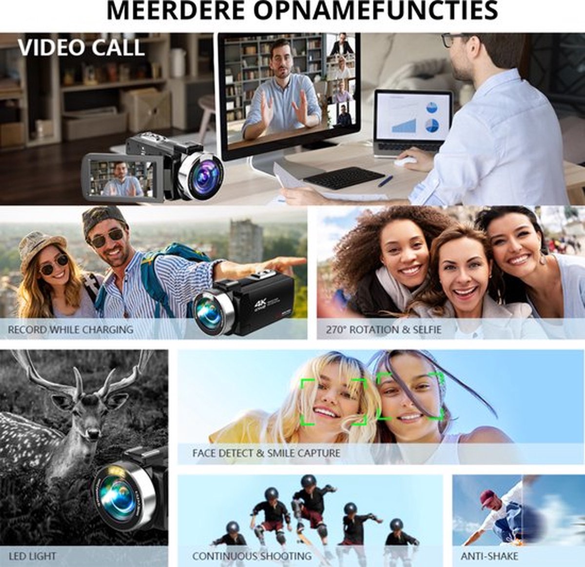 Ben je op zoek naar een krachtige en veelzijdige camcorder die jouw opnames naar een hoger niveau tilt? Zoek niet verder! De THUYS 4K FULL HD Camcorder combineert verbluffende beeldkwaliteit, professionele geluidsopname en gebruiksgemak, zodat jij elke herinnering haarscherp en vol details vastlegt. Of je nu een enthousiaste videomaker bent, content creator of gewoon mooie momenten wilt vastleggen, deze camera biedt alles wat je nodig hebt.